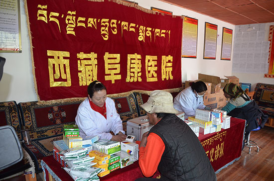 此次义诊活动西藏阜康医院针对那曲群众身体健康状况,专门组派在高原性疾病、心脑血管疾病、妇科疾病等方面有着丰富诊疗经验的全科专家医生团队,投入大量人力、物力、财力,不顾路途劳顿、不畏道路艰险,深入农牧区热情为农牧民患者诊治、送医送药、解答咨询,同时其他工作人员按照地委提出的关注群众身体健康状况的要求,深入开展健康常识教育宣传,教育群众要从改变不良生活习惯,做好个人卫生开始做起,加强健康常识的学习,提高防御疾病的意识。期间共开展集中义诊3场,接待就诊咨询群众达700余人次;深入卧病患者家中就诊60余人次;赠送各类药品100余种,价值达6万余元;发放健康教育宣传册1000余册。义诊中,医生发现前来看病的多为高龄病患,他们因种种原因不能及时去医院做检查治疗,通过义诊为他们提出相应的诊疗建议。