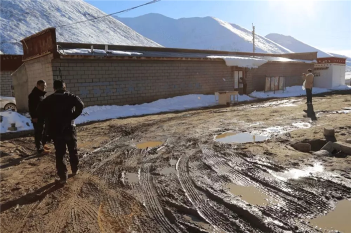▲王斌董事长与嘉黎县卫计委领导考察夏玛乡卫生院旧址