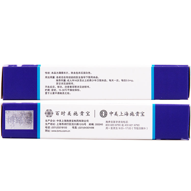 【药代动力学】吸收健康人群口服用药后,恩替卡韦片被迅速吸收,0.5到1.5小时达到峰浓度(Cmax)。每天给药一次,6-10天后可达稳态,累积量约为两倍。食物对口服吸收的影响进食标准高脂餐或低脂餐的同时口服0.5mg本品会导致药物吸收的轻微延迟(从原来的0.75小时变为1.0-1.5小时),Cmax降低44-46%,药时曲线下面积(AUC)降低18-20%。因此,本品应空腹服用(餐前或餐后至少2小时)。药代动力学资料表明,其表观分布容积超过全身液体量,这说明本品广泛分布于各组织。体外实验表明本品与人血浆蛋白结合率为13%。代谢和清除在给人和大鼠服用14C标记的恩替卡韦后,未观察到本品的氧化或乙酰化代谢物,但观察到少量II期代谢产物葡萄糖醛酸甙结合物和硫酸结合物。恩替卡韦不是细胞色素P450(CYP450)酶系统的底物、抑制剂或诱导剂。在达到血浆峰浓度后,血药浓度以双指数方式下降,达到终末清除半衰期约需128-149小时。药物累积指数约为每天一次给药剂量的2倍,这表明其有效累积半衰期约为24小时。本品主要以原形通过肾脏清除,清除率为给药量的62-73%。肾清除率为360-471mL/min,且不依赖于给药剂量,这表明恩替卡韦同时通过肾小球滤过和网状小管分泌。特殊人群性别:本品的药代动力学不因性别的不同面改变。种族:本品的药代动力学不因种族的不同而改变。老年人:一项评价年龄与本品药代动力学关系的研究(口服本品1.0mg)显示老年人的AUC较健康年轻人升高29.3%,这很可能是由于个体肾功能的差异所造成的。老年人的用药剂量参看肾功能不全者的剂量调节。肾功能不全在不同程度肾功能不全患者(无慢性乙型肝炎病毒感染),包括使用血液透析或持续性便携式腹膜透析(CAPD)治疗的患者中,单次给药1.0mg本品后的药代动力学结果显示清除率随肌酐清除率的降低而下降。单次给药1.0mg本品4小时后,血液透析能清除约给药剂量的13%,给药7天后,CAPD治疗仅能清除约给药剂量的0.3%。肝功能不全 在中度和重度肝功能不全(Child-Pugh分级B或C)患者(不包括慢性乙肝病毒感染患者)中,研究了单次给药1.0 mg后恩替卡韦的药代动力学情况,肝功能不全患者与健康对照人群的恩替卡韦的药代动力学情况相似。因此,无需在肝功能不全患者中调节恩替卡韦的给药剂量。肝移植后:目前尚不清楚本品在肝移植患者中的安全。