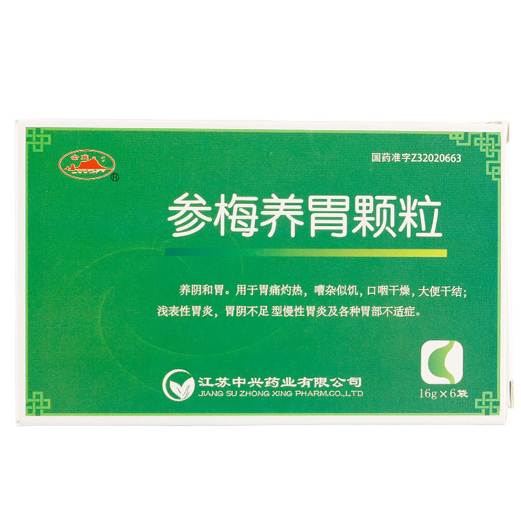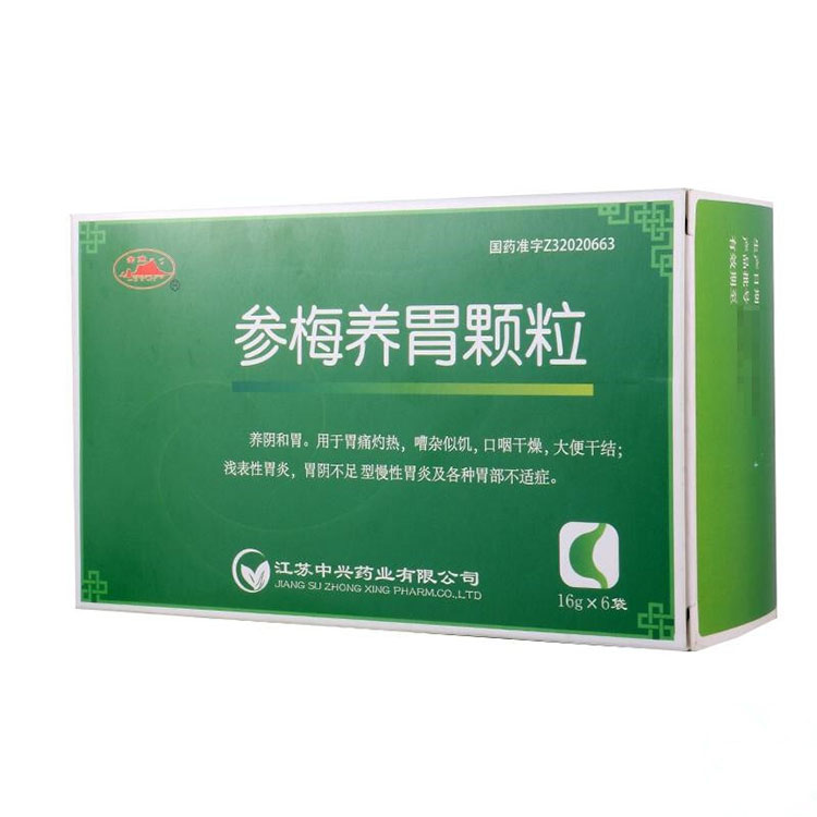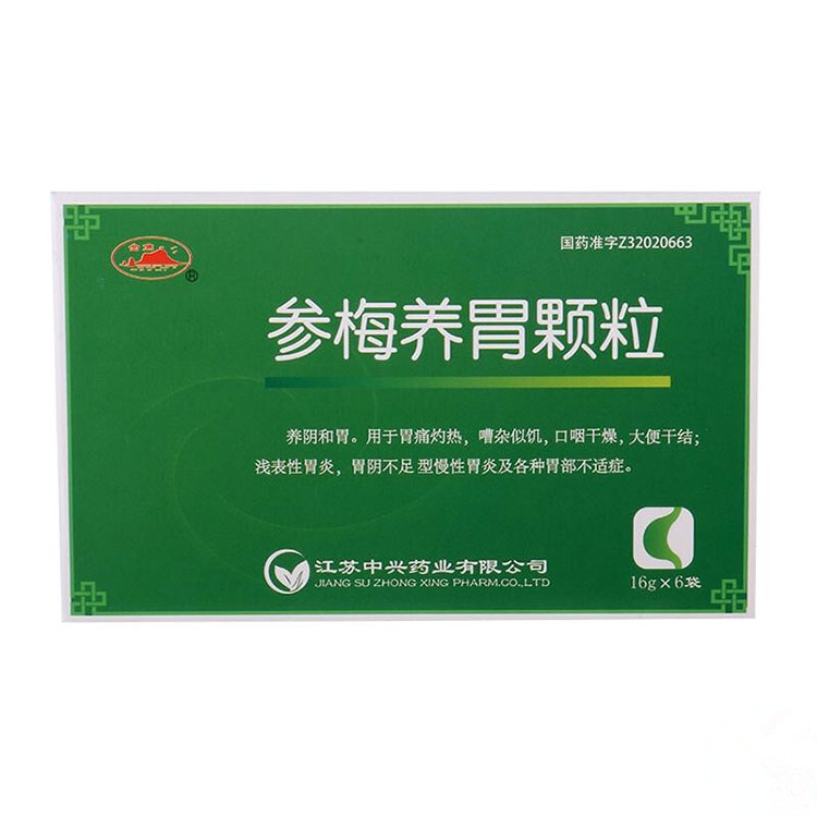 【功能主治/适应症】养阴和胃。参梅养胃颗粒用于胃痛灼热,嘈杂似饥,口咽干燥,大便干结;浅表性胃炎,胃阴不足型慢性胃炎及各种胃部不适症。