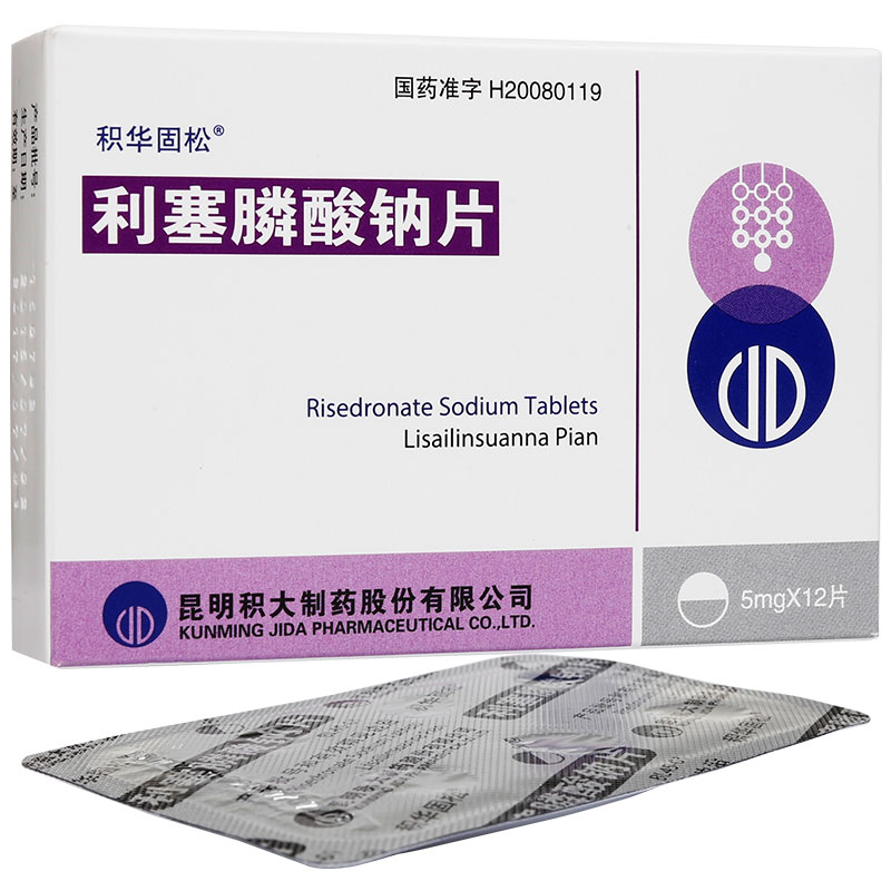 【药理毒理】利塞膦酸钠能够与骨中羟磷灰石结合,具有抑制骨吸收的作用。在细胞水平,本品抑制破骨细胞。破骨细胞通常存在于骨表面上,但不具有明显的吸收活性。对大鼠、狗、小猪进行组织形态测定,发现本品可减少骨转换(活化频率.即骨组织重构部位被活化的速率)和骨再塑部位的吸收。动物试验提示,本品可抑制骨质疏松模型大鼠和小型猪的破骨细胞,抑制骨吸收。大鼠和小猪分别经口给予本品(按体表面积折算,剂量分别为人用剂量5mg/m2的4和25倍,计算方法下同),骨量和骨生物力学强度呈剂量依赖性增加,骨密度的增加与骨生物力学强度呈现正相关,对骨结构和骨矿化无明显影响。狗经口给予本品(剂量分别为人用剂量的0.35-1.4倍),可促进骨更新单元水平上的骨平衡。狗经口给予本品1mg/kg/天(约为人用剂量的5倍),可延迟骨折愈合。这种作用与其他二膦酸盐化合物相似,但在0.1mg/kg/天的剂量下不发生。大鼠本品治疗后对骨骼进行组织检查,结果在高剂量(5mg/kg/天,皮下注射)下也没有影响骨矿化,也未出现骨软化。