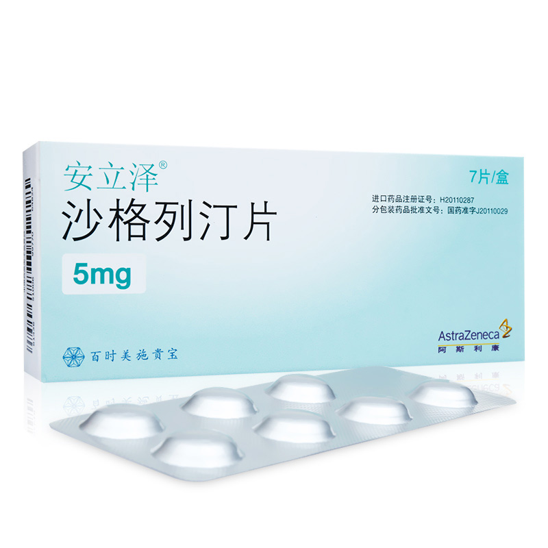 【注意事项】一般情况:沙格列汀不能用于1型糖尿病或糖尿病酮症酸中毒的患者。尚未进行沙格列汀与胰岛素联用的研究。肾功能不全:沙格列汀用于中重度肾功能不全患者的临床试验数据有限,不推荐用于这类人群(参见用法用量和药代动力学)。肝功能受损:沙格列汀用于中度肝功能受损患者需谨慎,不推荐用于重度肝功能不全的患者(参见用法用量和药代动力学)。过敏反应:沙格列汀不可用于对二肽基肽酶-4(DPP4)抑制剂存在严重过敏反应的患者。皮肤疾病:有报告在猴子的非临床毒理学试验中发现,猴的四肢出现溃疡和坏死性皮肤损伤。尽管在临床上并未发现皮损的发生率升高,但糖尿病并发皮损的患者使用沙格列汀的临床经验有限。上市后报告显示在使用DPP4抑制剂类的患者中出现了皮疹,因此皮疹也被列为沙格列汀的不良反应之一(参见不良反应)。在糖尿病患者的日常管理中,建议观察皮肤是否存在水泡,皮疹和溃疡。心力衰竭:在纽约心功能分级(NYHA)为I-II的患者中的临床经验有限,对NYHA为III-IV的患者使用沙格列汀的情况没有临床经验。免疫功能低下患者:沙格列汀临床试验并未对接受器官移植或者明确诊断为免疫缺陷综合征的免疫功能低下的患者进行研究。因此,尚未获得沙格列汀在此类患者中的有效性和安全性。乳糖:安立泽含有乳糖一水合物。罕见的半乳糖不耐受遗传疾病、Lapp乳糖酶缺乏症或葡萄糖-半乳糖吸收不良患者不得服用沙格列汀片。与已知会引起低血糖的药物合用:胰岛素促泌剂(如磺脲类)会引起低血糖。因此,与沙格列汀合用时,需减少胰岛素促泌剂的剂量,以降低发生低血糖的风险。大血管风险终点事件研究:目前尚无结论性的临床研究证明沙格列汀或其他任何糖尿病治疗药物可降低大血管并发症的风险。