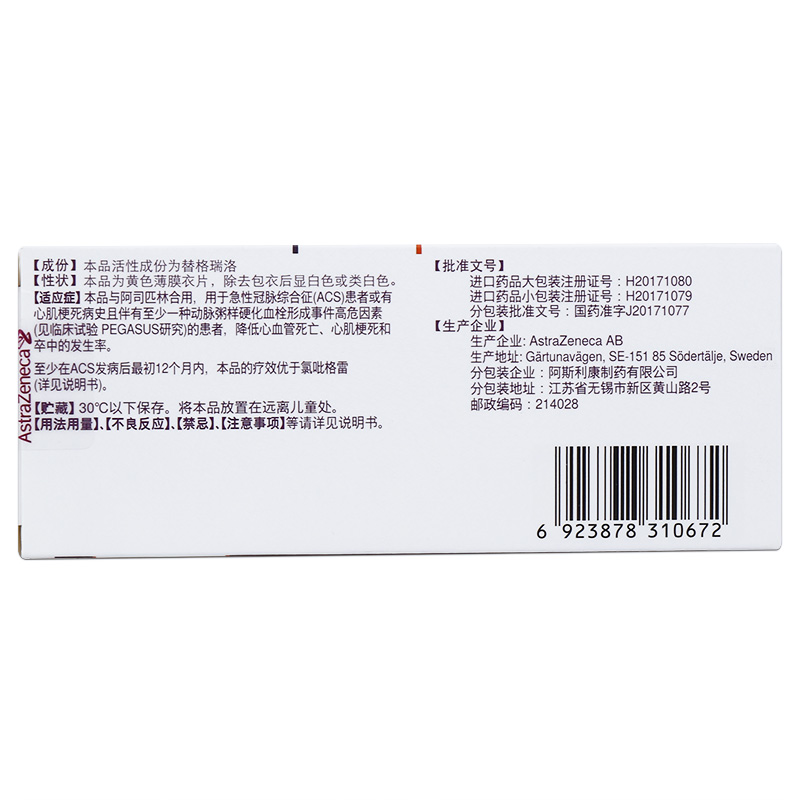【成份】本品活性成份为替格瑞洛