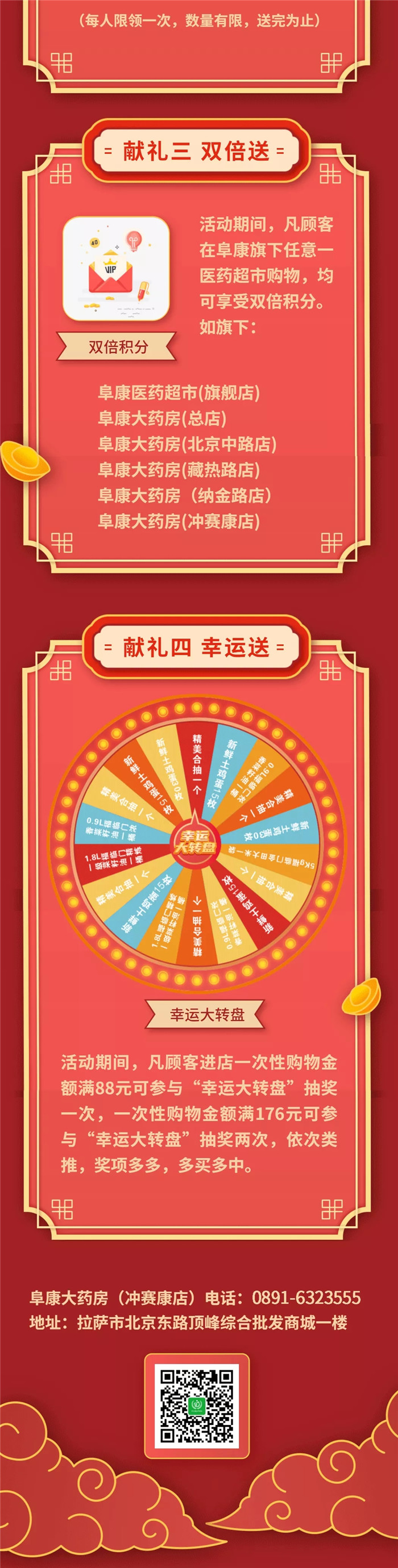 为了方便顾客购药,让大家在家门口就能买到平价药品。2021年2月3日,阜康大药房冲赛康店盛大开业,这是阜康大药房在拉萨的第六家药店!